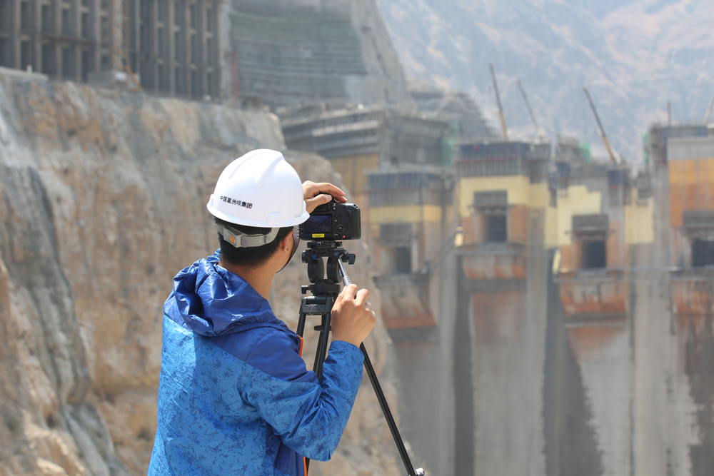 攝(she)影師(shi)對(dui)烏(wu)東德(de)水電(dian)站(zhan)大(da)壩(ba)主體進行拍攝(she) 攝(she)影/劉海草