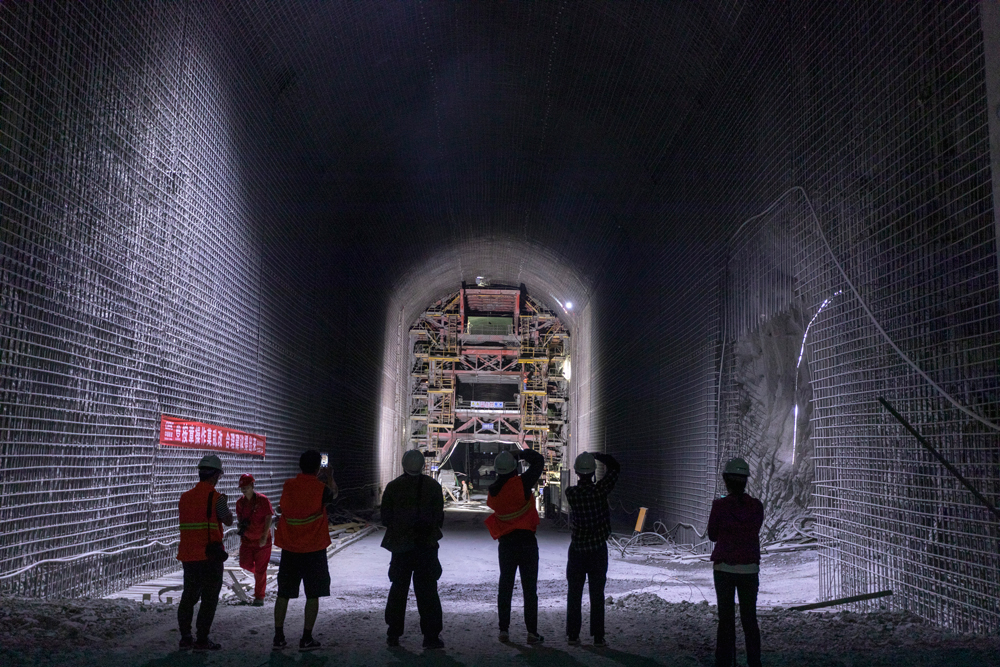在烏東德水電站泄洪洞施工現場,攝影師們記錄下鋼模臺車的作業場景 攝影/王攀
