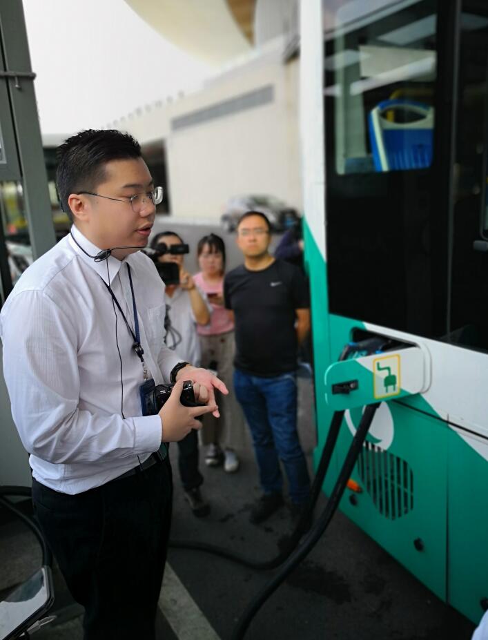 南方電網在港珠澳大橋人工島建設的360千瓦充電樁,給往來公交車輛提供綠色能源。(謝先哲 攝)