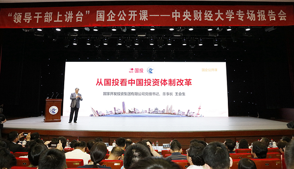 國(guo)資委黨委和教育部聯合開展的(de)“領導干部上講臺”——國(guo)企(qi)公開課100講、國(guo)企(qi)骨(gu)干擔任(ren)校(xiao)外輔(fu)導員活動正式(shi)啟(qi)動以來,引起社會(hui)各界熱烈反響。6月5日,國(guo)投黨組書記、董事長王會(hui)生(sheng)走進中央財經大學,以《從(cong)國(guo)投看中國(guo)投資體制改革》為(wei)題目(mu)作(zuo)報告。