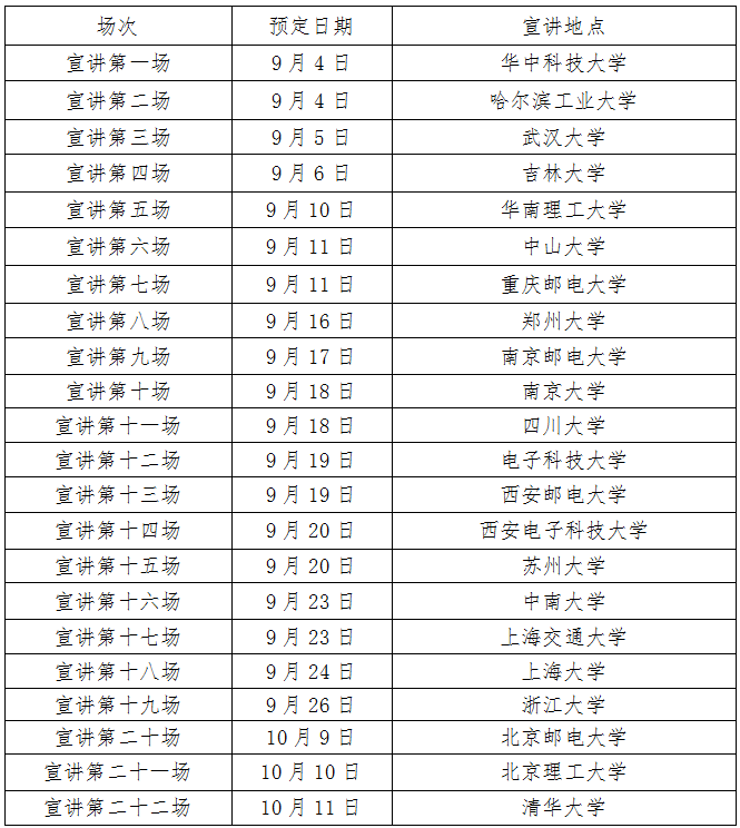 校園宣講行(xing)程若有變動調整,請以校園招(zhao)聘官方網站(zhan)公告(gao)行(xing)程為準!