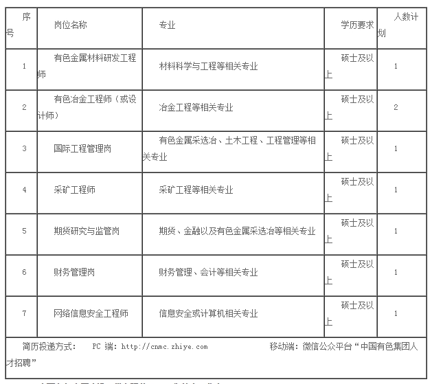 4、認可中國有色集團企業精神和價值觀,愿意為國家的資源安全做出貢獻。符合相關職位任職基本條件。