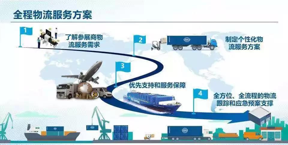 相較(jiao)于首(shou)屆進博會(hui),中(zhong)(zhong)遠海(hai)(hai)運(yun)(yun)不僅是第(di)二屆進口博覽會(hui)官方推薦的(de)唯一國際運(yun)(yun)輸(shu)(shu)服務(wu)(wu)(wu)商(shang),而(er)且還是5家官方推薦的(de)主場運(yun)(yun)輸(shu)(shu)服務(wu)(wu)(wu)商(shang)之一。基于這樣完備的(de)展品運(yun)(yun)輸(shu)(shu)服務(wu)(wu)(wu)資(zi)質,以(yi)及中(zhong)(zhong)遠海(hai)(hai)運(yun)(yun)專業完善的(de)服務(wu)(wu)(wu)能力和(he)資(zi)源(yuan),中(zhong)(zhong)遠海(hai)(hai)運(yun)(yun)為展商(shang)推出了“一單到(dao)底”的(de)運(yun)(yun)輸(shu)(shu)服務(wu)(wu)(wu),旨在為這一屆展商(shang)帶來更好的(de)運(yun)(yun)輸(shu)(shu)體驗。