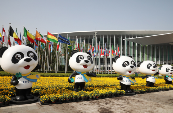 10月30日,一排進博會吉祥物熊貓“進寶”在國家會展中心(上海)南廣場安放到位。新華社記者 方喆 攝