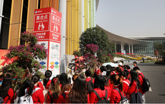10月30日,在國家會展中心(上海),一批進博會志愿者在工作人員的帶領下熟悉展館道路和功能區劃。新華社記者 方喆 攝