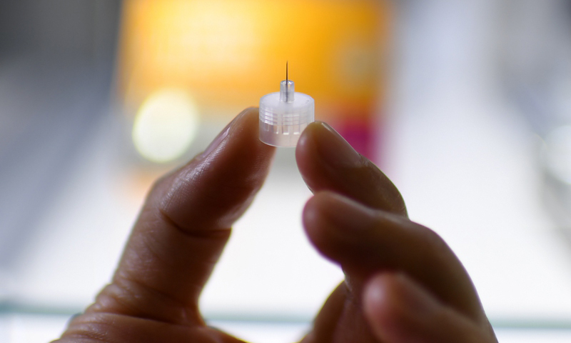 全球(qiu)最短、最細胰島(dao)素注(zhu)射針(zhen)現(xian)身進博會,這是該款新品在日本市(shi)場以外(wai)的首次展出。(人民(min)網記者(zhe) 翁奇羽 攝)