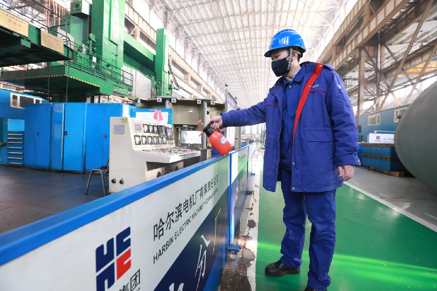 共(gong)克時艱,分秒必爭(zheng)。推(tui)動(dong)有序(xu)復(fu)工(gong)復(fu)產(chan),是黨(dang)中央(yang)統籌疫情防(fang)(fang)控和(he)(he)經(jing)濟(ji)社(she)會發(fa)展作出(chu)的(de)(de)重要部(bu)署(shu)。作為黑龍(long)江省的(de)(de)支柱企業,哈電集團(tuan)在落實(shi)好各項防(fang)(fang)控措施的(de)(de)同時,認真貫(guan)徹中央(yang)政治(zhi)局(ju)、國資委(wei)黨(dang)委(wei)關(guan)于推(tui)動(dong)企業復(fu)工(gong)復(fu)產(chan)的(de)(de)部(bu)署(shu)要求,積極有序(xu)地推(tui)動(dong)復(fu)工(gong)復(fu)產(chan),全力以赴保持生產(chan)經(jing)營(ying)穩定運行,努力發(fa)揮對(dui)產(chan)業鏈(lian)上下游和(he)(he)其他(ta)中小型企業的(de)(de)帶動(dong)引(yin)領作用。
