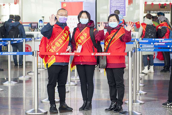 中鐵十七局中心醫院醫護人員在機場準備出發趕往武漢。