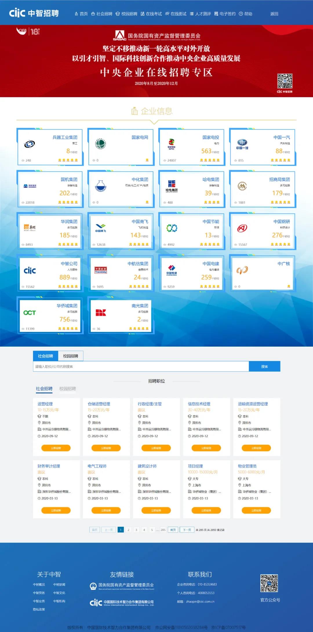 本(ben)次大會(hui)設立(li)了(le)“中央企(qi)業在(zai)線(xian)招(zhao)(zhao)聘專(zhuan)區(qu)”,中智集團發(fa)揮自身優勢,依托(tuo)“中智招(zhao)(zhao)聘”專(zhuan)業平臺(tai),承辦專(zhuan)區(qu)在(zai)線(xian)招(zhao)(zhao)聘活動,為各參展中央企(qi)業提(ti)供“在(zai)線(xian)招(zhao)(zhao)聘、在(zai)線(xian)宣講(jiang)會(hui)、在(zai)線(xian)考試(shi)、在(zai)線(xian)面試(shi)、人才測(ce)評、電子(zi)簽約”等全流程線(xian)上招(zhao)(zhao)聘服務。