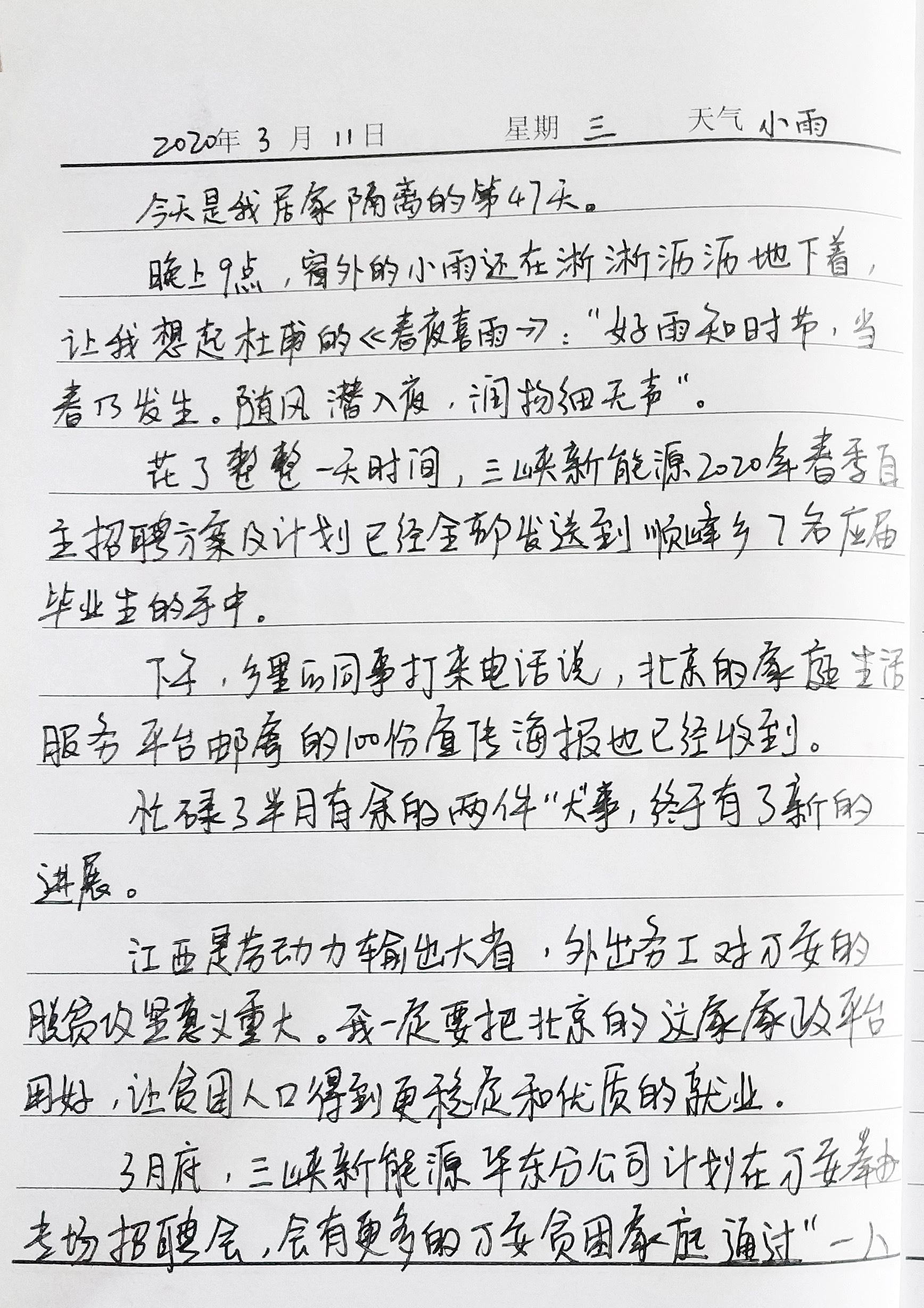 花了整整一(yi)天時間(jian),三(san)峽新能(neng)源2020年春(chun)季(ji)自主招聘(pin)方(fang)案及計劃已經全部發(fa)送到順(shun)峰(feng)鄉7名應屆(jie)畢業生的手中。