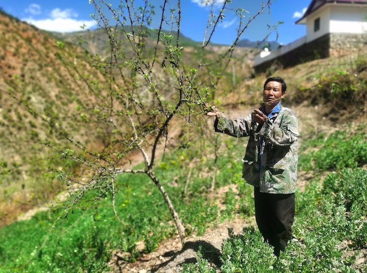 向阿軍觀察花椒長勢