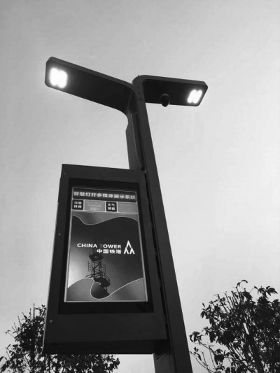 帶有通信基站、路燈照明和廣告發布功能的多功能智慧桿。