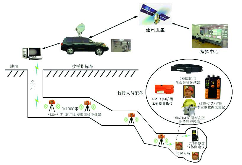在(zai)應急(ji)通(tong)信(xin)與救(jiu)(jiu)援信(xin)息化方面(mian),中(zhong)國煤科基于(yu)無線(xian)MESH網絡(luo)技(ji)術(shu)、骨傳導技(ji)術(shu)等(deng),研制了KJ30礦用救(jiu)(jiu)災無線(xian)通(tong)信(xin)系(xi)統,將(jiang)事發地點的(de)現場音視頻、環境參數、救(jiu)(jiu)護(hu)隊員生命(ming)體征等(deng)信(xin)息傳輸(shu)至后臺(tai)指(zhi)揮中(zhong)心,其中(zhong)無線(xian)中(zhong)繼器與之間的(de)傳輸(shu)距離不(bu)小于(yu)1000m,系(xi)統延時不(bu)大(da)于(yu)2s,目前已(yi)在(zai)14個國家礦山應急(ji)救(jiu)(jiu)援區域(yu)隊和多個礦業公司救(jiu)(jiu)護(hu)隊得(de)到應用。