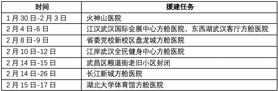由于前期已經援建五(wu)所(suo)方(fang)艙醫院,集團(tuan)公(gong)司可調配的(de)人、財、物等各種資源已近極限,但“時間就是生命(ming)”“疫情就是命(ming)令”,集團(tuan)公(gong)司號召(zhao)公(gong)司上下(xia)“不計成本(ben),只要結果”,迅速組織在漢黨員(yuan)突擊隊緊急趕赴現場,動員(yuan)一切(qie)力量保(bao)證物資供應。