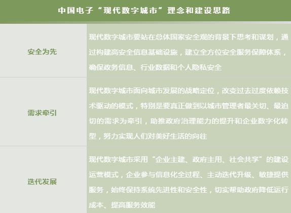 2019年(nian)5月,作為落實“數字(zi)中(zhong)(zhong)國(guo)(guo)”戰略的重要舉措,在第二屆(jie)數字(zi)中(zhong)(zhong)國(guo)(guo)建設峰會上,中(zhong)(zhong)國(guo)(guo)電子董事長(chang)、黨組書記芮曉(xiao)武首次系統闡(chan)述了“現(xian)(xian)代(dai)數字(zi)城市”理(li)念和(he)建設思路,秉持“安全為先(xian)、需求牽引、迭代(dai)發展”的原則,采(cai)取“替代(dai)+升(sheng)級”“運營(ying)+服(fu)務”模式,致(zhi)力于打造“數字(zi)中(zhong)(zhong)國(guo)(guo)”樣板工程,為實現(xian)(xian)“治理(li)能力現(xian)(xian)代(dai)化(hua)(hua)、治理(li)體系現(xian)(xian)代(dai)化(hua)(hua)、經濟體系現(xian)(xian)代(dai)化(hua)(hua)”奠定(ding)堅實基(ji)礎(chu)。