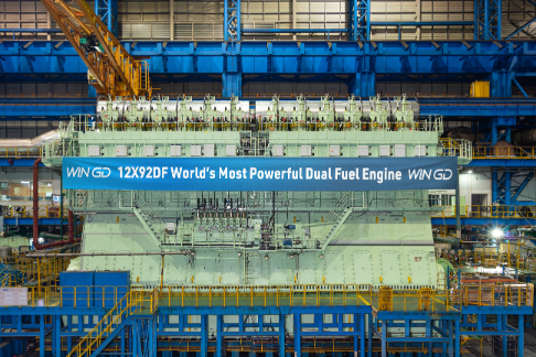 2020年5月26日,由中國船舶(bo)集團(tuan)自(zi)主(zhu)研(yan)(yan)發(fa)(fa)的(de)(de)目前世界最大船用雙燃(ran)(ran)料低(di)速機WinGD X92DF正式向全球(qiu)發(fa)(fa)布。該機集大功(gong)率、智能控(kong)制、綠色環(huan)保于一(yi)體,以(yi)優異的(de)(de)性能和(he)排放(fang)指標引領世界同類型發(fa)(fa)動機,在任何工(gong)況下可(ke)以(yi)實(shi)現燃(ran)(ran)料品種(zhong)的(de)(de)動態轉(zhuan)換,單(dan)機功(gong)率可(ke)達(da)63840千瓦,在燃(ran)(ran)用天然氣時,二氧(yang)化碳、氮(dan)氧(yang)化物、硫氧(yang)化物和(he)PM顆粒排放(fang)比傳統燃(ran)(ran)油(you)發(fa)(fa)動機分(fen)別降(jiang)低(di)20%、85%、99%和(he)98%。該機的(de)(de)成(cheng)功(gong)研(yan)(yan)制和(he)發(fa)(fa)布,表明中國船舶(bo)集團(tuan)順應(ying)全球(qiu)海事業(ye)(ye)綠色節能、低(di)碳環(huan)保發(fa)(fa)展趨勢、服務客戶需求取得(de)了里程碑意義的(de)(de)進展,也標志著我(wo)國船舶(bo)工(gong)業(ye)(ye)動力裝備自(zi)主(zhu)研(yan)(yan)制水平實(shi)現新的(de)(de)突破,對于推(tui)動我(wo)國船舶(bo)工(gong)業(ye)(ye)產業(ye)(ye)鏈、供應(ying)鏈安全發(fa)(fa)展具有(you)重(zhong)要意義。