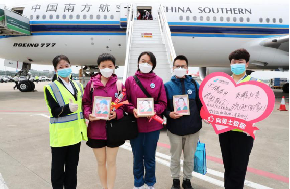 赴鄂廣東醫療隊返抵廣州白云機場后與工作人員合影