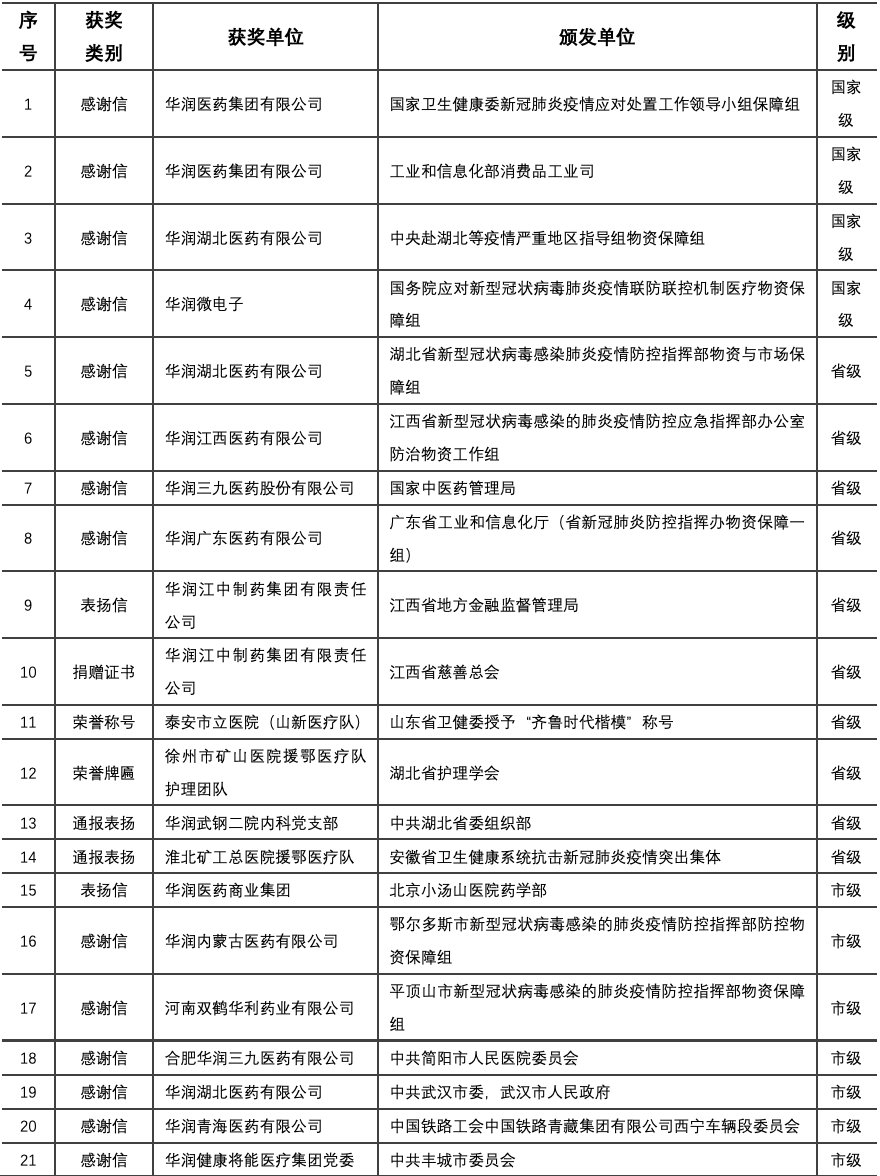從武(wu)漢(han)暴發疫(yi)情那一(yi)(yi)刻(ke)起,集團所(suo)屬(shu)華潤醫(yi)療(liao)(liao)和(he)(he)華潤健康立即緊(jin)急部署(shu)湖(hu)北省內2家醫(yi)療(liao)(liao)機構(華潤武(wu)鋼總醫(yi)院(yuan)、武(wu)鋼二醫(yi)院(yuan))、1300多名醫(yi)護人(ren)員(yuan)支(zhi)援(yuan)武(wu)漢(han)金銀(yin)潭、九醫(yi)院(yuan)等(deng)定點收治(zhi)醫(yi)院(yuan)以(yi)及方艙醫(yi)院(yuan)和(he)(he)醫(yi)學(xue)隔離點,同時不斷從全(quan)國各地(di)分批(pi)派(pai)出(chu)醫(yi)療(liao)(liao)隊(dui)馳援(yuan)一(yi)(yi)線,疫(yi)情期(qi)間共派(pai)出(chu)337名醫(yi)護人(ren)員(yuan)支(zhi)援(yuan)湖(hu)北一(yi)(yi)線抗疫(yi)工作,另有162名醫(yi)護人(ren)員(yuan)組建(jian)好(hao)預備隊(dui),等(deng)待(dai)隨時支(zhi)援(yuan)武(wu)漢(han)和(he)(he)屬(shu)地(di)其他醫(yi)療(liao)(liao)機構。