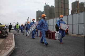 戰天(tian)斗地,與(yu)時(shi)間(jian)賽(sai)跑。喻振賢(xian)在現場與(yu)第一工(gong)(gong)程公司、第三公司工(gong)(gong)程公司主要負責人下達(da)(da)戰令,要求迅速集結人員(yuan),管理團隊務(wu)必當天(tian)晚上、作業人員(yuan)務(wu)必第二天(tian)中午12時(shi)前抵達(da)(da)武漢(han)。