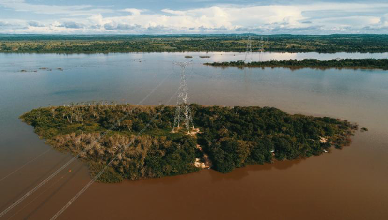 美麗山二期特高壓線路跨越阿拉瓜亞河實景