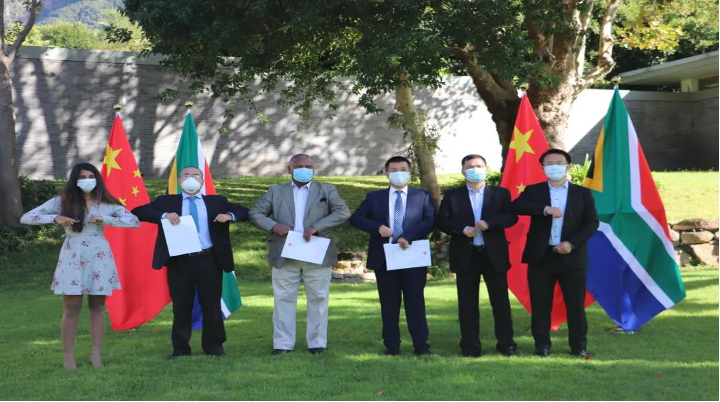 在中國駐開普敦總領事見證下,公司向開普敦市長移交抗疫物資和善款