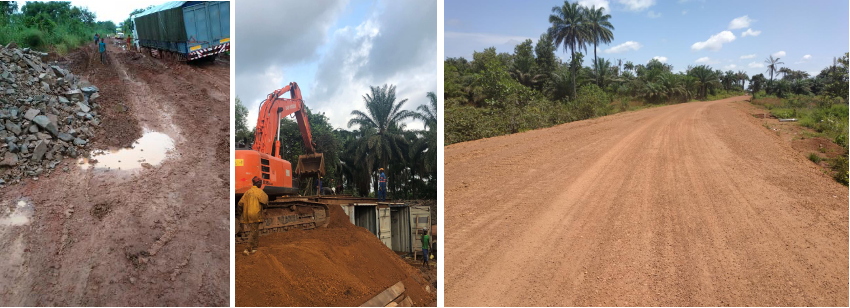 中國地(di)質幾-馬分公(gong)司幾內亞高亞公(gong)路項目組的(de)(de)營地(di)距離幾內亞N4國道約5公(gong)里,這(zhe)5公(gong)里簡易(yi)土路穿過多(duo)個(ge)村莊(zhuang),跨越三(san)條常年(nian)不(bu)斷流的(de)(de)小河(he)。原來(lai)的(de)(de)簡易(yi)土路非(fei)常狹窄,多(duo)數路段只能單(dan)車(che)通過,數個(ge)涵洞(dong)因(yin)年(nian)久失(shi)修,過水能力差,每年(nian)7-9月(yue)份雨季期間,常因(yin)暴雨過后河(he)道漲水淹(yan)沒橋涵而一(yi)個(ge)多(duo)月(yue)無(wu)法通行(xing),給當地(di)民眾的(de)(de)出行(xing)帶(dai)來(lai)極(ji)大的(de)(de)不(bu)便。