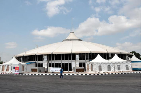 今(jin)日(ri)(ri)(ri)劇院(yuan)方艙醫(yi)院(yuan)位(wei)于(yu)首(shou)都地(di)(di)區部(bu)市(shi)中心,是在今(jin)日(ri)(ri)(ri)劇院(yuan)(Thisday Dome)原有基礎上進(jin)行改(gai)造而成(cheng)。3月(yue)29日(ri)(ri)(ri),中國土(tu)木尼(ni)日(ri)(ri)(ri)尼(ni)亞(ya)(ya)公司收到(dao)尼(ni)日(ri)(ri)(ri)利(li)亞(ya)(ya)政府(fu)緊急請求(qiu)支(zhi)援(yuan),由于(yu)疫情(qing)嚴(yan)重(zhong),尼(ni)日(ri)(ri)(ri)利(li)亞(ya)(ya)部(bu)分城市(shi)已封城、市(shi)場關閉、公眾(zhong)活(huo)動暫停,當地(di)(di)員(yuan)(yuan)工都已休假或居家(jia)辦公。中國土(tu)木尼(ni)日(ri)(ri)(ri)尼(ni)亞(ya)(ya)公司調(diao)派出所屬(shu)的(de)阿(a)布賈(jia)航站樓項目部(bu)的(de)精干人員(yuan)(yuan),組(zu)織(zhi)30名中方人員(yuan)(yuan)、85名當地(di)(di)員(yuan)(yuan)工以(yi)及投入12臺套設備進(jin)行搶建。公司用兩周的(de)時(shi)間,完成(cheng)地(di)(di)面重(zhong)建、隔板焊接、出入口通道(dao)、廁所、消(xiao)毒室(shi)、供水箱、化糞池、消(xiao)毒箱等(deng)工作,并(bing)(bing)派專家(jia)協助其他公司負(fu)責設備安裝和調(diao)試,并(bing)(bing)于(yu)5月(yue)12日(ri)(ri)(ri)順利(li)交付給尼(ni)日(ri)(ri)(ri)利(li)亞(ya)(ya)政府(fu)。