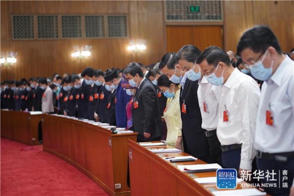 5月21日,中國人民政治協商會議第十三屆全國委員會第三次會議在北京人民大會堂開幕。全體與會人員默哀1分鐘,對新冠肺炎疫情犧牲烈士和逝世同胞表示深切哀悼。新華社記者 邢廣利 攝