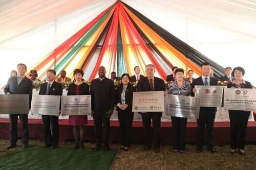 贊比亞高教部部長和中國教育部職成司二級巡視員為中贊職業技術學院七家分院授牌