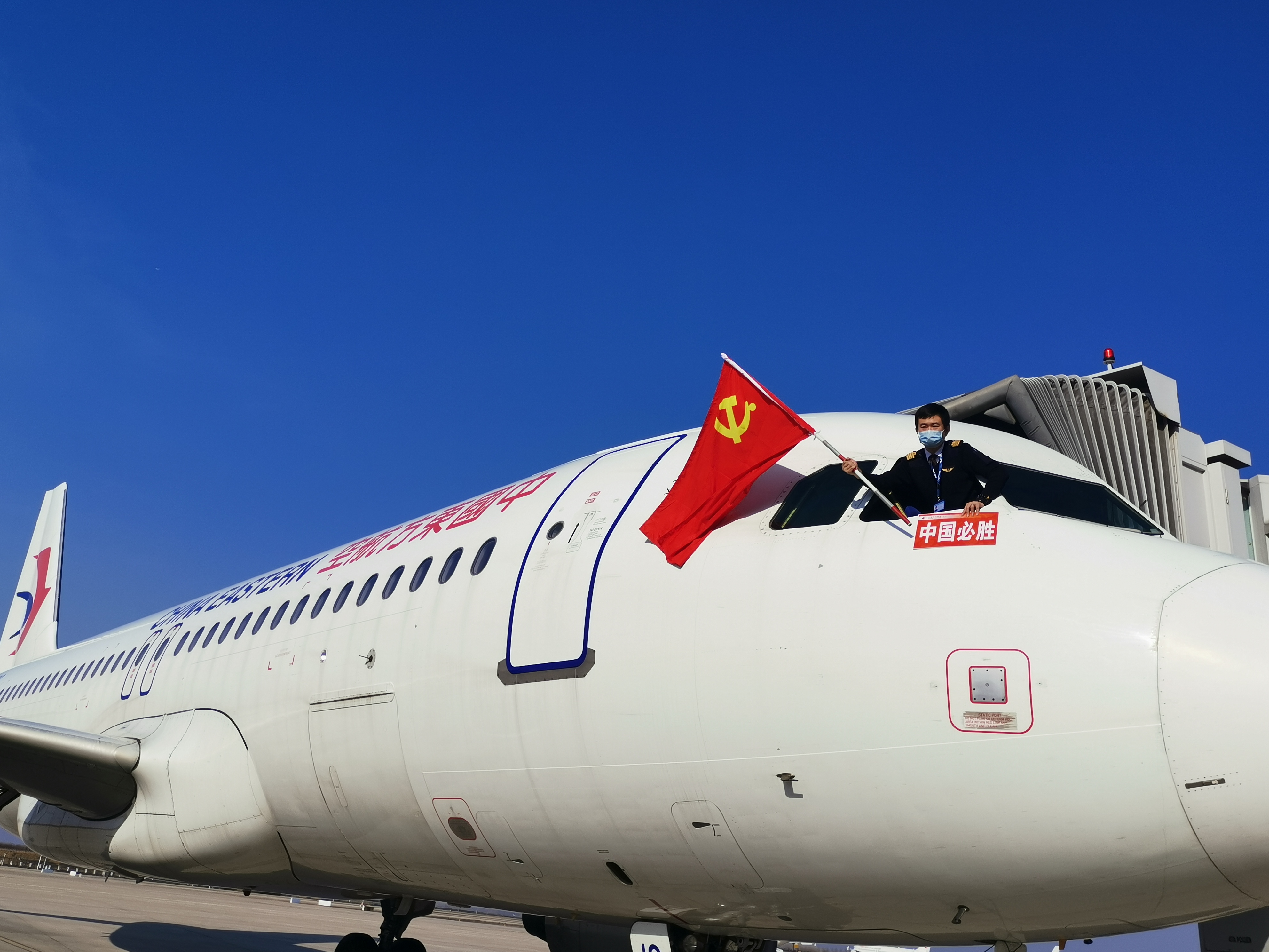 東航集團:2020年2月20日,東航執行安徽-武漢包機航班,運送安徽省援鄂醫療隊馳援武漢抗疫一線。航班落地武漢后,當班機長揮舞黨旗,遙祝醫療隊平安凱旋而歸。