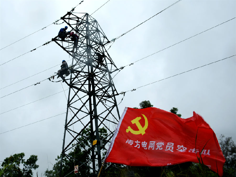 6月(yue)14日,臺風“鸚鵡”來襲,南(nan)方電網廣東茂(mao)名(ming)信宜(yi)供電局黨員(yuan)突擊隊現(xian)場(chang)搶修。(葉茂(mao) 攝(she))
