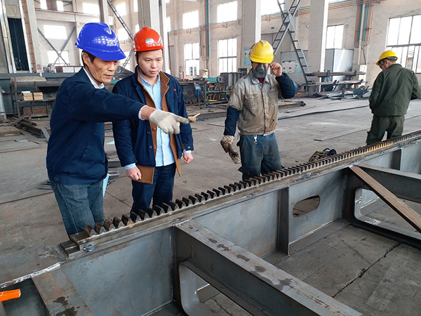 在(zai)裝(zhuang)船機監造過程(cheng)(cheng)中(zhong)(zhong)(zhong),嚴(yan)漢圣實事(shi)求是(shi)、格(ge)外較(jiao)真,對每一(yi)道(dao)工序(xu)嚴(yan)格(ge)把控。在(zai)中(zhong)(zhong)(zhong)心料斗安(an)裝(zhuang)襯板(ban)過程(cheng)(cheng)中(zhong)(zhong)(zhong),他發現沉頭(tou)孔深度不(bu)(bu)一(yi),不(bu)(bu)符合要(yao)求,他堅持要(yao)廠方重新(xin)打(da)孔。“如果(guo)沉頭(tou)孔深度不(bu)(bu)到位,螺栓(shuan)頭(tou)部外露,在(zai)生(sheng)產作業(ye)過程(cheng)(cheng)中(zhong)(zhong)(zhong)磨損很快,很容易造成襯板(ban)脫落,引起撕(si)裂(lie)膠帶(dai)的大事(shi)故。”嚴(yan)漢圣嚴(yan)肅地說到。