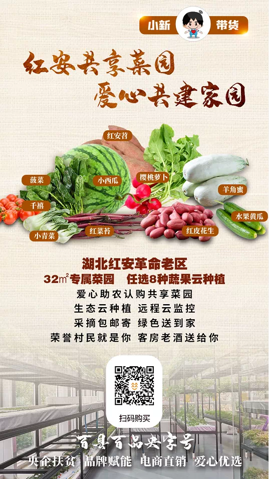 本(ben)場(chang)直播間帶(dai)貨的(de)(de)產品是一份你向往的(de)(de)田園(yuan)生活,更是愛(ai)的(de)(de)傳(chuan)遞和真情(qing)的(de)(de)幫助。你們愛(ai)心認購的(de)(de)共(gong)享菜(cai)園(yuan),讓(rang)湖北紅安希(xi)望小鎮更有希(xi)望。