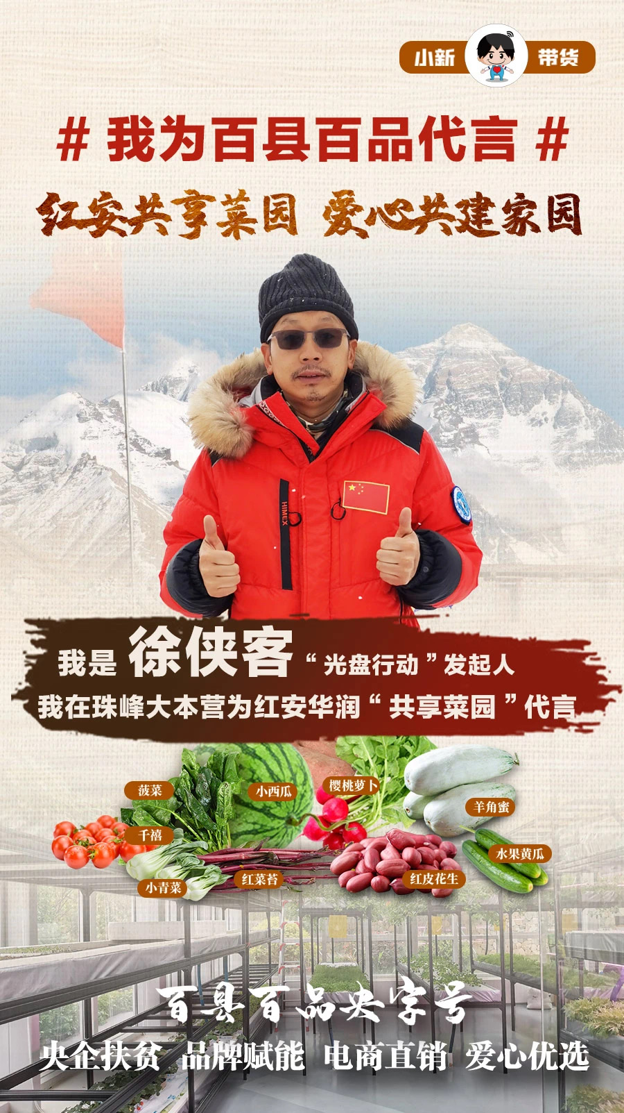 華潤慈善基金會副(fu)理事(shi)長(chang)魏耀(yao)東在“國資小(xiao)新”直播間(jian),化身(shen)“網紅村長(chang)”帶領粉絲云(yun)逛(guang)“紅安華潤希(xi)望小(xiao)鎮”,現場還連線了環(huan)球網和遠在珠穆朗(lang)瑪(ma)的徐(xu)俠客老師,重(zhong)點推介了紅安華潤希(xi)望小(xiao)鎮“共(gong)享(xiang)菜(cai)園”。