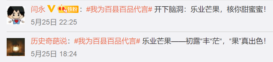 眾多企業轉發微博為樂(le)業芒果帶貨助(zhu)力。