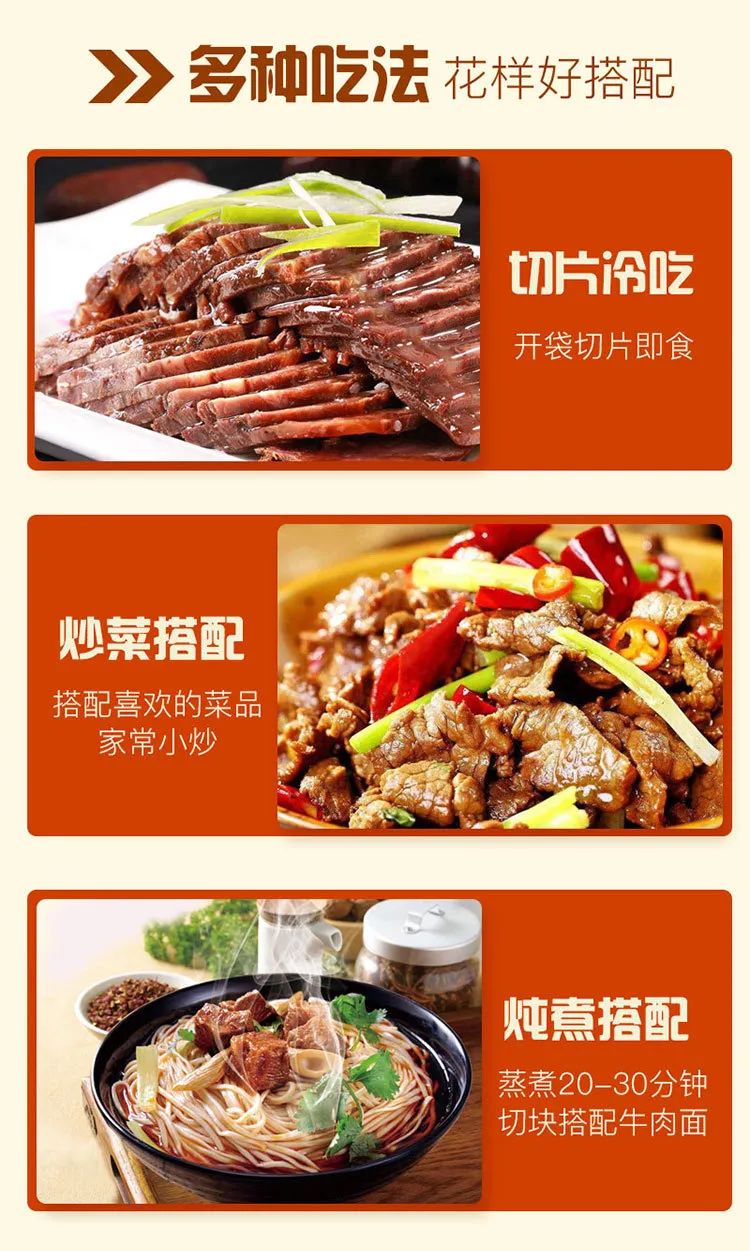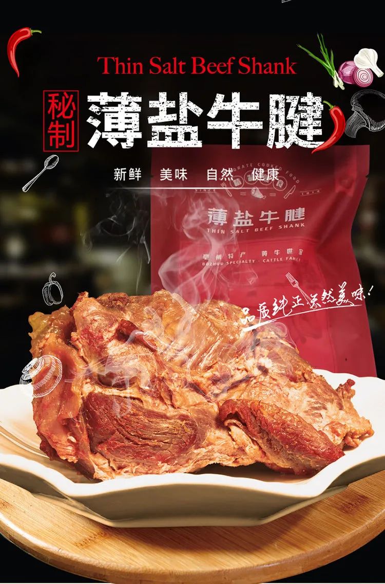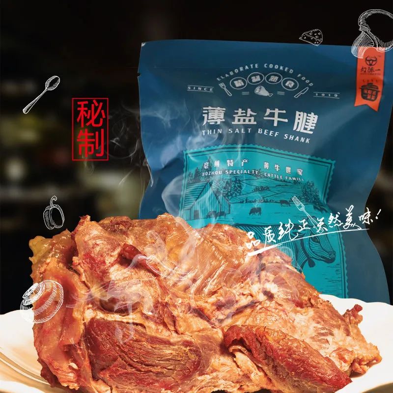 利辛淝河黃牛(niu)肉(薄鹽(yan)牛(niu)腱)利用傳(chuan)統工藝制(zhi)(zhi)作(zuo)而成(cheng)醬(jiang)牛(niu)肉,無任何防腐劑(ji)、添加劑(ji),以牛(niu)腱部位為主要原料,經(jing)過(guo)多種秘(mi)制(zhi)(zhi)香(xiang)料腌(a)制(zhi)(zhi)而成(cheng)。入口微(wei)甜,回(hui)味微(wei)咸回(hui)甜,醬(jiang)香(xiang)濃郁(yu)、口感(gan)純正(zheng)、酥嫩爽口,油潤光(guang)亮(liang),肌肉中(zhong)的少量牛(niu)筋色黃而透明,肉質(zhi)緊實 ,切片(pian)時保持完整不會(hui)松散(san)。