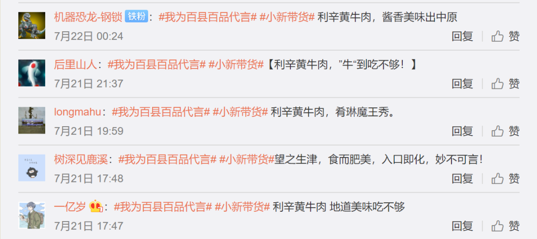 7月(yue)21日起,小新號(hao)召網友(you)啟動智(zhi)慧的小宇宙為利辛黃(huang)牛肉(rou)征(zheng)集(ji)一句響當(dang)當(dang)的廣告語,為利辛黃(huang)牛肉(rou)等當(dang)地農特(te)產品品牌賦能(neng)。