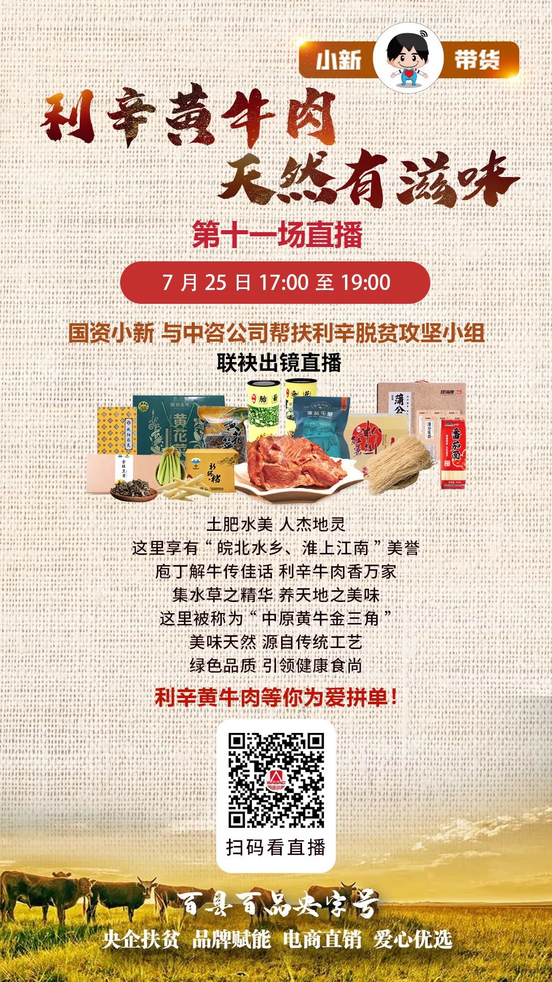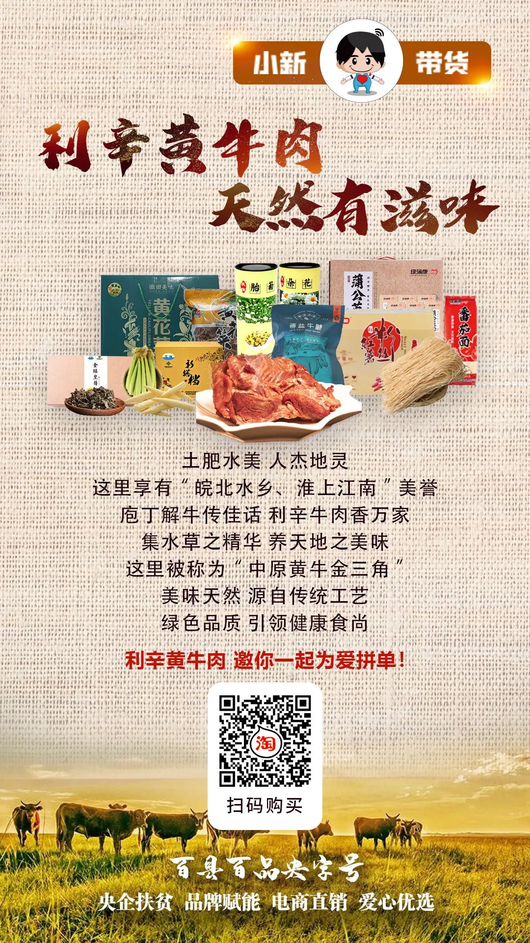 7月25日17:00-19:00,#百(bai)縣(xian)百(bai)品央(yang)字號(hao)#暨#小(xiao)新(xin)帶貨#第十一(yi)場走進(jin)中咨公(gong)司定點扶貧縣(xian)——安(an)徽省亳(bo)州(zhou)市利辛縣(xian),為您直播(bo)帶貨肉(rou)質鮮嫩、營養豐富的利辛黃牛肉(rou)。