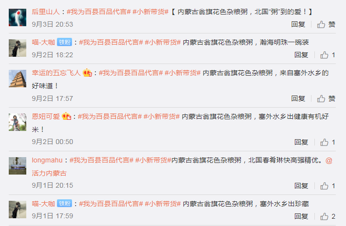 9月1日起,小新全(quan)網(wang)征(zheng)集內蒙古翁旗雜(za)糧粥(zhou)(zhou)廣(guang)告(gao)語,為翁旗雜(za)糧粥(zhou)(zhou)等當地農產品品牌賦能。廣(guang)大網(wang)友(you)積極響應,獻(xian)智慧(hui)更獻(xian)愛心。