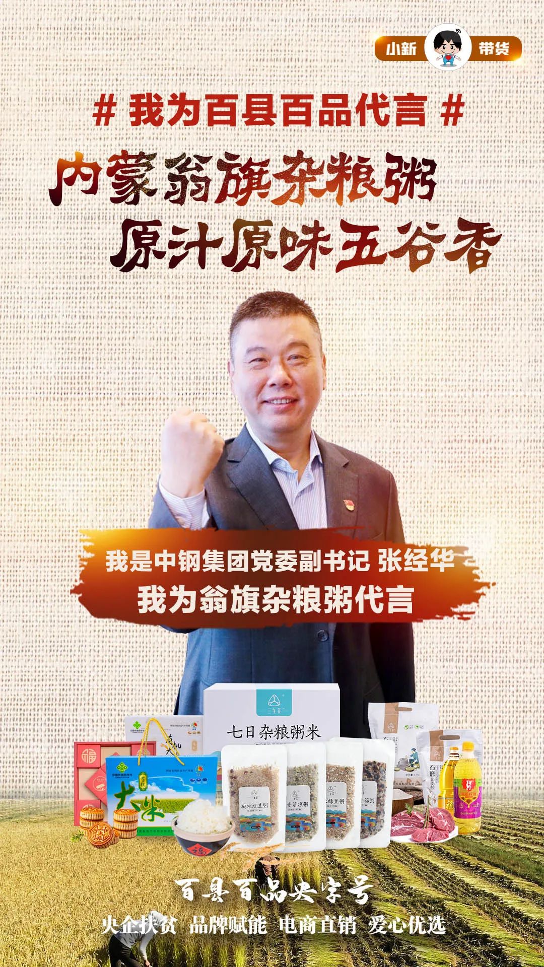 9月5日直播(bo)間,中(zhong)鋼(gang)集(ji)團黨委(wei)副(fu)書記張(zhang)經華、翁旗(qi)扶貧辦副(fu)主任于東云、中(zhong)鋼(gang)集(ji)團派駐翁旗(qi)掛職(zhi)扶貧干(gan)部(bu)聯袂出鏡直播(bo),帶貨(huo)翁旗(qi)雜(za)糧粥(zhou)等當(dang)地特(te)色農產品。
