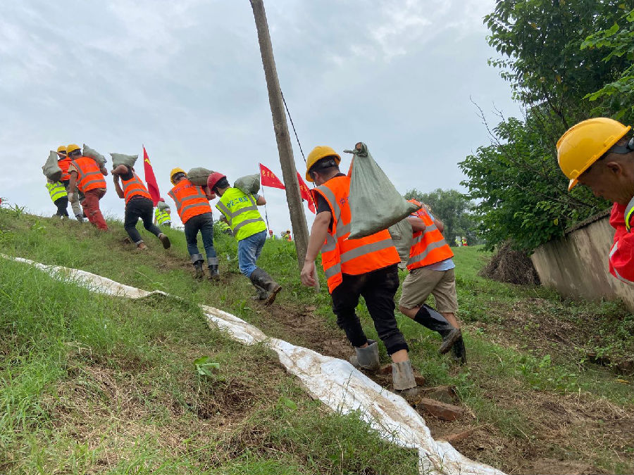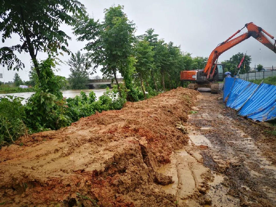 7月6日,臨(lin)近中交四公(gong)局鄂州(zhou)三江港項(xiang)目(mu)的(de)螺螄港水位急劇上漲,最低處河水水位距離(li)堤頂(ding)不足(zu)10厘米,隨時可(ke)能發生(sheng)漫堤險(xian)情。接(jie)到通報后(hou),鄂州(zhou)三江港項(xiang)目(mu)立(li)即啟動抗洪搶險(xian)應急預案,組織項(xiang)目(mu)全體(ti)人員(yuan)開展應急搶險(xian)工(gong)作(zuo),調動挖(wa)掘機填高河堤并裝(zhuang)碼沙(sha)袋加(jia)固,經過不間(jian)斷的(de)人機配合,壘起了(le)一條(tiao)高60厘米,長80米的(de)河堤,保障了(le)項(xiang)目(mu)及周邊兩(liang)個村(cun)莊村(cun)民(min)的(de)生(sheng)命財產(chan)安全。