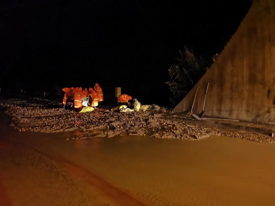 受近期強(qiang)降雨影響,中交四(si)公局負責運營的銅永(yong)高速公路(lu)永(yong)川段出現(xian)洪(hong)澇災害(hai),玉龍山(shan)(shan)隧(sui)道洞頂截水溝出現(xian)山(shan)(shan)澗大面積積水,淤積物阻塞高速公路(lu)。中交四(si)公局銅永(yong)項(xiang)目公司(si)立即啟動(dong)應急(ji)預(yu)案,趕赴事故現(xian)場緊急(ji)搶險,設立醒(xing)目的交通(tong)標(biao)牌,維護交通(tong)秩序,保障道路(lu)安(an)全(quan)暢通(tong)。