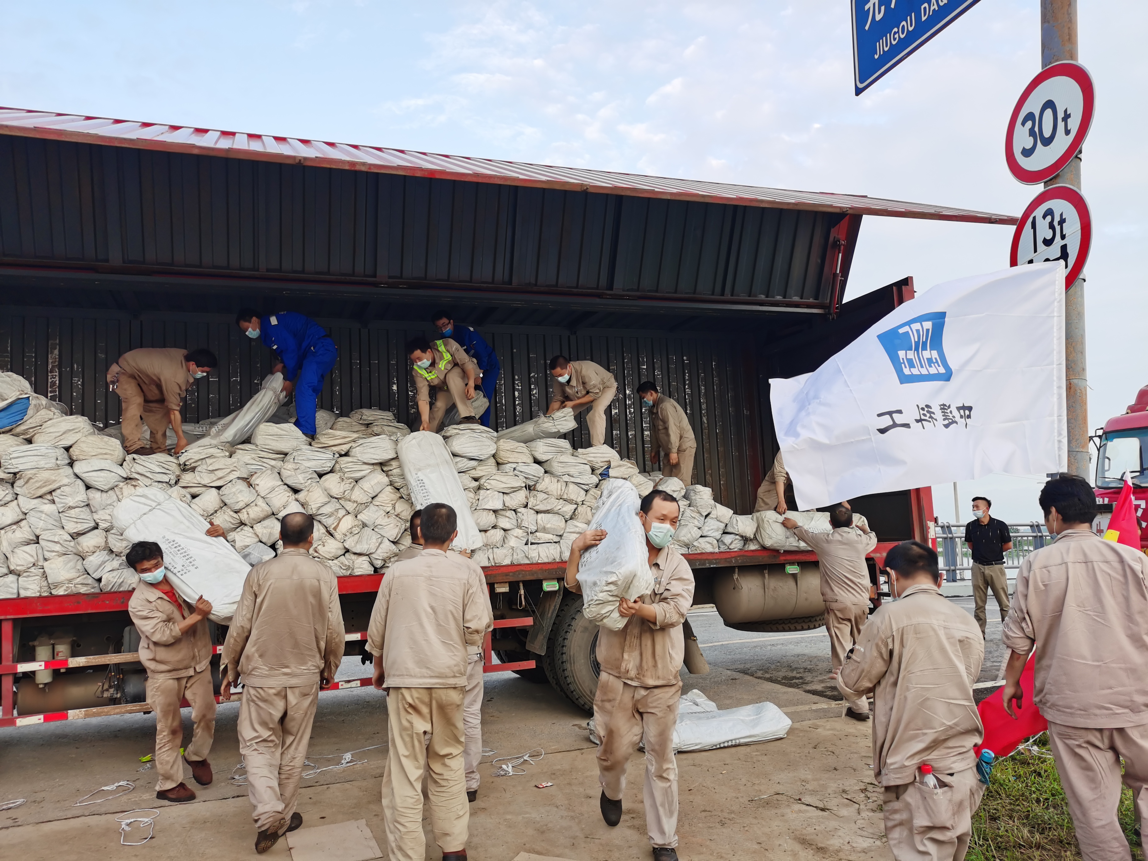 7月6日上午,湖北省(sheng)鄂州市(shi)燕(yan)磯鎮中(zhong)學出現內澇,中(zhong)建(jian)西部建(jian)設所屬(shu)中(zhong)建(jian)商砼燕(yan)磯廠(chang)得(de)(de)到消息(xi)后(hou)第一時間聯絡了(le)燕(yan)磯鎮政府請求加入支援。中(zhong)午12時35分,得(de)(de)到政府批復的(de)燕(yan)磯廠(chang)迅(xun)速組(zu)建(jian)起11人防汛搶(qiang)險突擊隊(dui)投(tou)入燕(yan)磯中(zhong)學物資搶(qiang)險救援工作,用(yong)近3個小時,終于在水(shui)位漫過倉(cang)庫前順(shun)利完成了(le)救災物資的(de)搶(qiang)運。