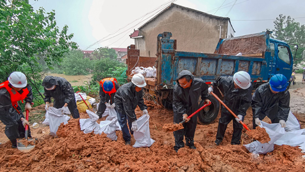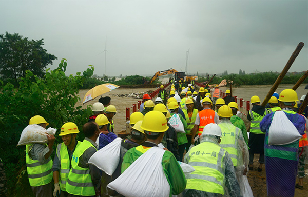 7月8日,合九鐵(tie)路跨黃梅縣黃梅大道出現塌方,中鐵(tie)十一(yi)局(ju)集團、中鐵(tie)十二局(ju)集團派出150余(yu)人的應急搶險(xian)突擊隊,經過5小時搶險(xian)化險(xian)為夷;黃岡市蘄春縣管窯鎮竹林墩村(cun)受(shou)持續強降雨影(ying)響(xiang),山洪暴發未經河堤(di)沖(chong)向(xiang)村(cun)內。中國(guo)鐵(tie)建大橋(qiao)局(ju)集團棋盤洲(zhou)長江公路大橋(qiao)項目部組成(cheng)近90人的抗洪搶險(xian)分隊,將村(cun)民撤(che)離(li)到安全地點并修筑防洪堤(di)壩,成(cheng)功將防洪土袋堆(dui)碼到位,攔截了沖(chong)進村(cun)內和農田的水流。