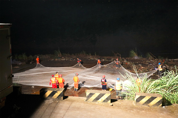 在貴州桐梓,松坎河水(shui)位暴漲,上游一處(chu)工(gong)地拌合站3個60噸(dun)水(shui)泥(ni)粉罐被山洪沖走,直(zhi)接威脅下游重慶(qing)市綦江區(qu)趕水(shui)鎮跨河鐵路(lu)橋梁(liang)及(ji)沿(yan)河群眾財產設施安全。中鐵二十(shi)三局集團(tuan)渝(yu)黔擴能項目部積極(ji)配合參與河道(dao)攔(lan)截罐體,支(zhi)立攔(lan)截網,架設施工(gong)用電線路(lu)為夜(ye)間搶險照(zhao)明,成功(gong)將罐體打撈(lao)上岸,及(ji)時(shi)解除了安全隱(yin)患(huan)。