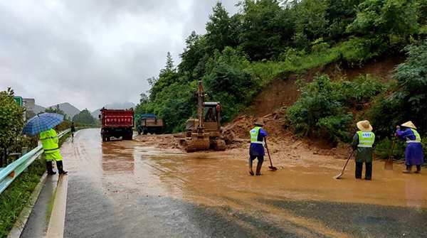 在貴(gui)州安順和廣(guang)西(xi)桂林,中(zhong)國(guo)鐵建投資集團運(yun)(yun)營管理的(de)安紫高(gao)速(su)(su)公路、資興高(gao)速(su)(su)公路因邊坡(po)土方(fang)滑落導(dao)致交通中(zhong)斷。項目(mu)運(yun)(yun)營人員(yuan)組織養護單(dan)位調用(yong)自卸車、挖機疏通道(dao)路,恢復道(dao)路通行(xing)(xing);使用(yong)沙(sha)袋對局部垮塌處(chu)進(jin)行(xing)(xing)砌(qi)壘防護,保(bao)障道(dao)路安全。運(yun)(yun)營人員(yuan)還在服務區、收費站、沿線提示(shi)牌(pai)上設置“前方(fang)邊坡(po)坍塌,車輛小心慢行(xing)(xing)!”警示(shi)語,對往來(lai)司(si)乘進(jin)行(xing)(xing)安全提示(shi)。
