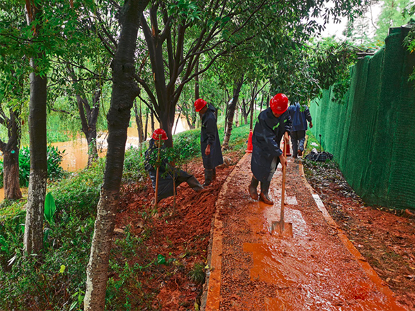 在云南(nan)昆明,中(zhong)鐵十八局集團昆明市政項目“全(quan)副武(wu)裝”,加入(ru)到指(zhi)揮疏(shu)導交通(tong)的(de)行(xing)列中(zhong)。他們奔赴各積水(shui)點位,冒(mao)雨打開井蓋,清理(li)雜(za)物(wu),疏(shu)通(tong)排水(shui)通(tong)道(dao);在工地旁的(de)人行(xing)道(dao)上,手握掃帚(zhou)、鐵鍬,鏟除淤泥,保證了(le)積水(shui)路段(duan)的(de)交通(tong)通(tong)暢和行(xing)車安全(quan),受到了(le)當地交警和群眾(zhong)的(de)點贊。