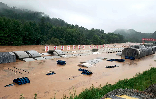 在云(yun)南(nan)鎮雄,中鐵十七局(ju)集團昭瀘項目拌(ban)合站(zhan)、窩凼溝大橋、坪上隧(sui)道(dao)(dao)斜井等(deng)工點相繼因(yin)暴雨受(shou)損(sun)。該項目立即啟動防(fang)汛救災緊(jin)急預(yu)案,通(tong)過(guo)在各水(shui)害路(lu)段堆(dui)碼(ma)沙袋,堵水(shui)引流;及時(shi)清(qing)理泄水(shui)河道(dao)(dao)、路(lu)面雜(za)物(wu),防(fang)止堵塞;同(tong)時(shi)拓寬(kuan)河道(dao)(dao)泄洪面,加固河堤,將(jiang)施工現場受(shou)災情況降(jiang)到(dao)了最低。