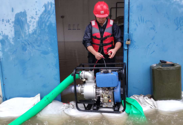檢修(xiu)員工用時(shi)20個(ge)小時(shi),完(wan)成全長500多米的大功率潛(qian)水泵(beng)排水管(guan)道安(an)裝作業,對現(xian)場積(ji)水進行(xing)抽排,并在(zai)廠區道路兩側堆放沙(sha)包(bao),防止出(chu)現(xian)嚴重積(ji)水。