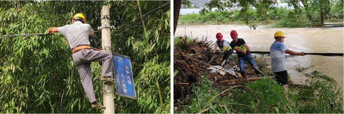 宣城旌德(de)縣(xian)分公司組織搶(qiang)(qiang)修人員(yuan)值守一線,轉戰作業(ye),確保通信不受(shou)影響。整(zheng)個(ge)搶(qiang)(qiang)險過(guo)程中(zhong),黨員(yuan)帶頭奮(fen)戰在湍(tuan)急的洪水中(zhong),竭盡全力布放鋼(gang)絞(jiao)線纜,搶(qiang)(qiang)修中(zhong)斷的光(guang)纜線路,確保網絡運行(xing)暢通。